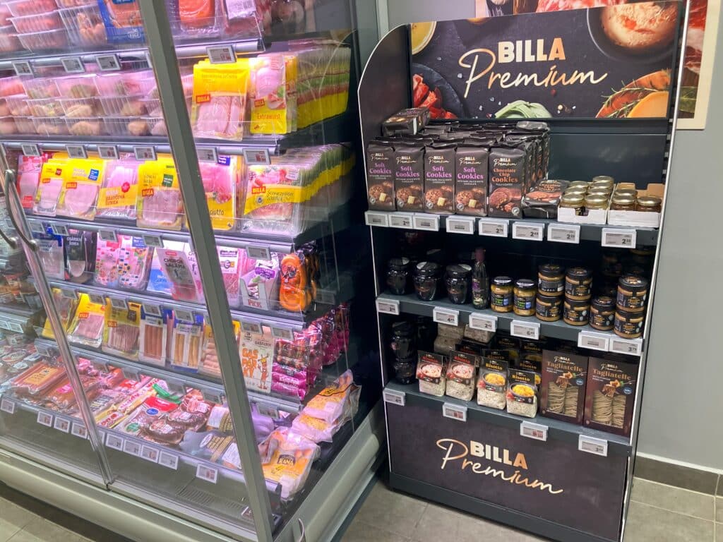 V samoobslužnej sekcii Billa vystavuje väčší podiel privátnych značiek údenín ako konkurencia, doplnený samostatnou prémiovou radou Billa Premiium prispôsobenou pre luxusnejšiu spádovú oblasť.