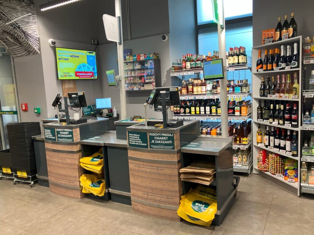 Hybridná pokladničná zóna je efektívne integrovaná s impulzívnym sortimentom vín a liehovín na strane obsluhovanej pokladne…