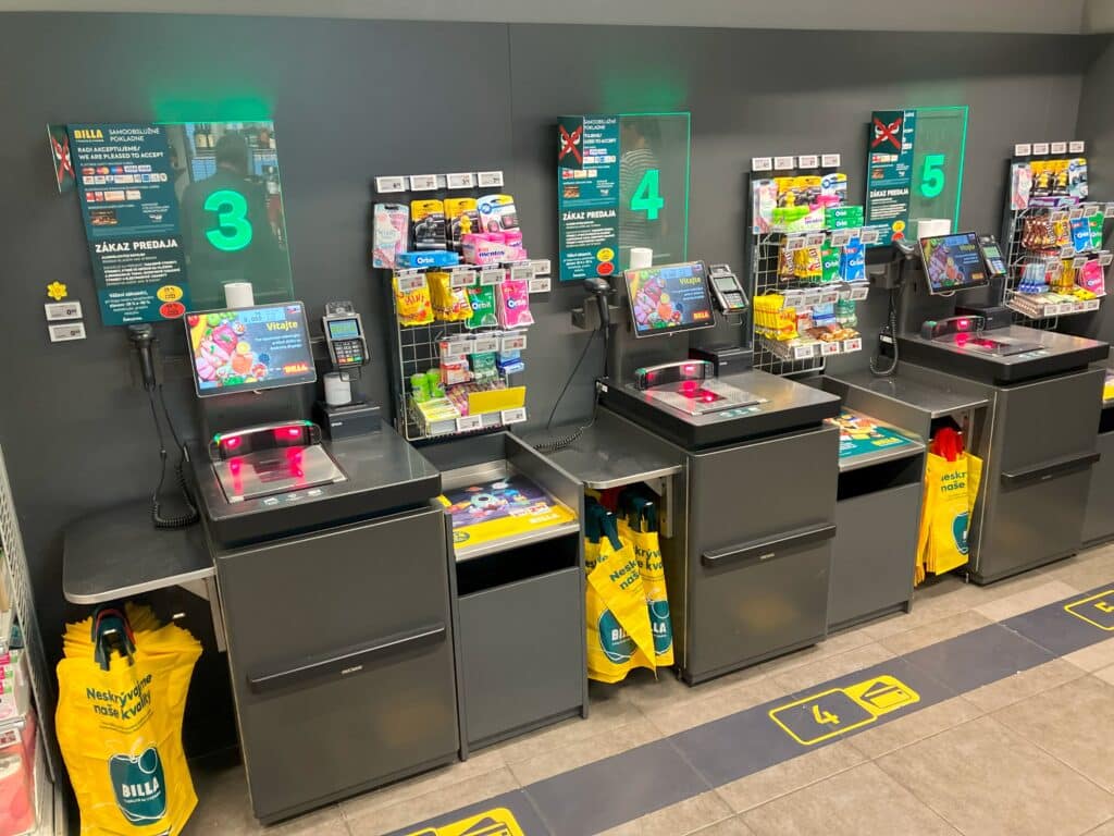 …a zároveň ponúka možnosť rýchlej platby cez samoobslužné pokladne na druhej strane.