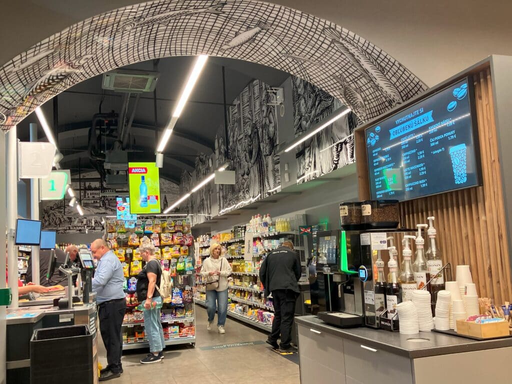 Kávový kútik umiestnený pred pokladňou dodáva zážitku z convenience predajne šmrnc.