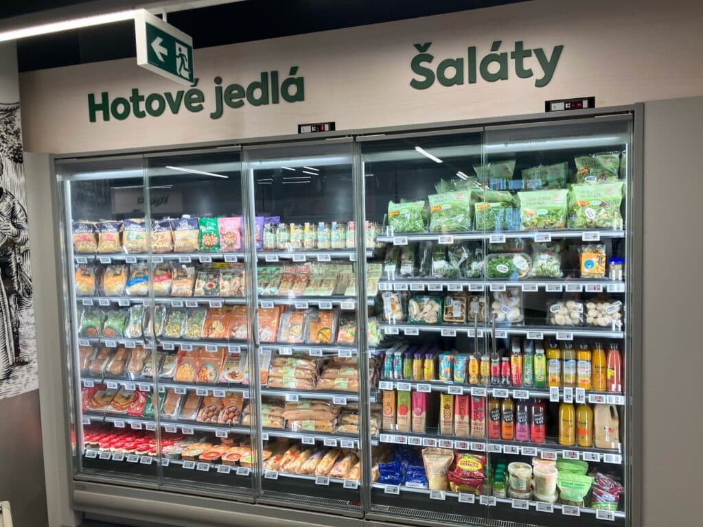 Zadná stena je venovaná chladeným hotovým jedlám, čerstvým šalátom a smoothies.