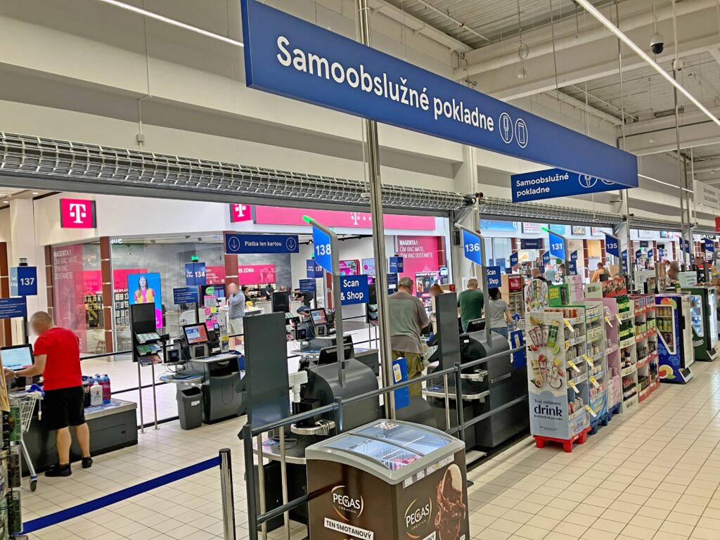 Polovica pokladničnej zóny v predajniach Tesco bola prerobená na samoobslužné pokladne.