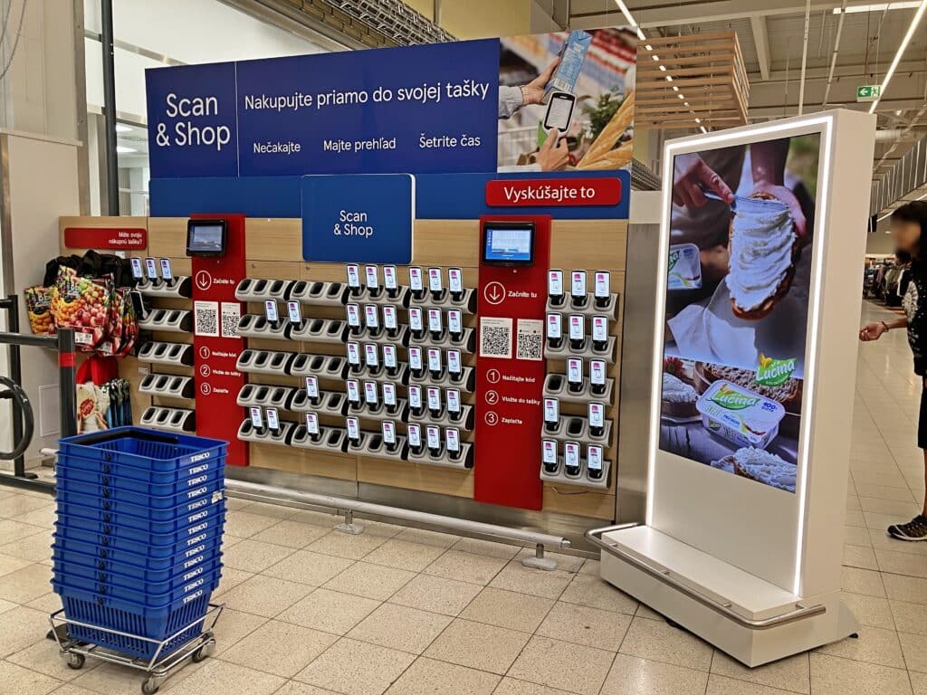 Služba Scan&Shhop nakupovanie od Tesca pomáha kompenzovať časovú nevýhodu nakupovania vo veľkoformátovom obchode tým, že umožňuje zákazníkom skenovať položky priamo do tašiek (vozíkov), čím sa zážitok z hypermarketu stáva pohodlnejším a efektívnejším. (pozn. red. Tesco túto službu nasadilo vo veľkom meradle ako prvé na Slovensku).