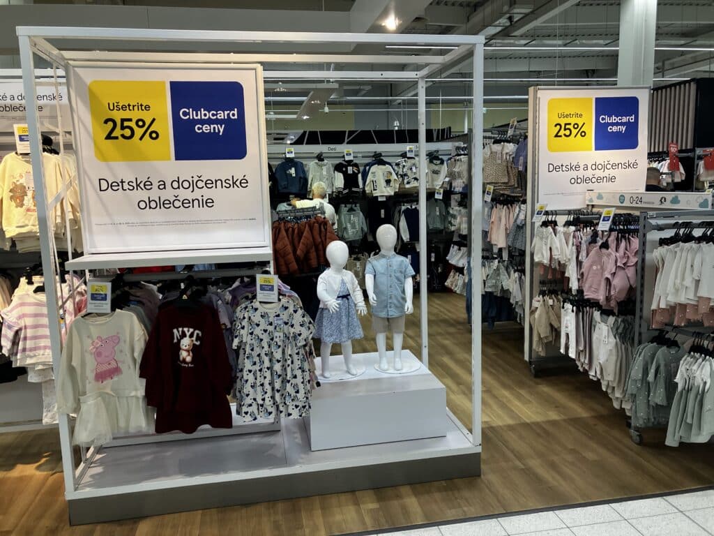 Tesco prezentuje F&F ako kompletnú rodinnú destináciu s oblečením, čo posilňuje jasná segmentácia a silné propagačné akcie Clubcard s dôrazom na cenu.